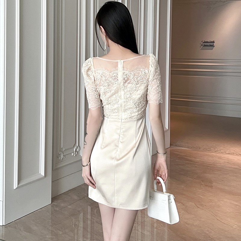 - 丝绒蕾丝连衣裙
