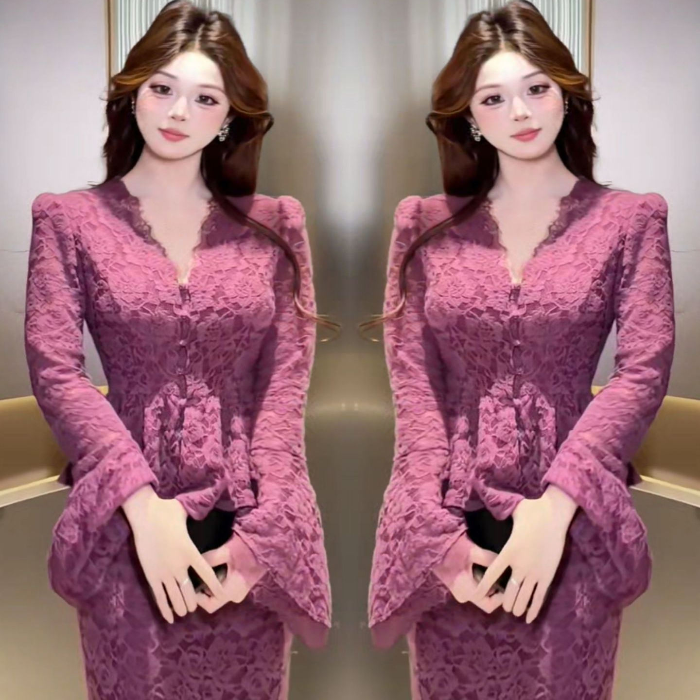 - 蕾丝连衣裙长裙打底