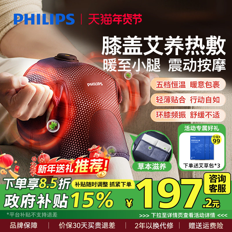 飞利浦膝盖按摩仪护膝女士关节保暖老人寒腿部神器理加发热敷贴疗