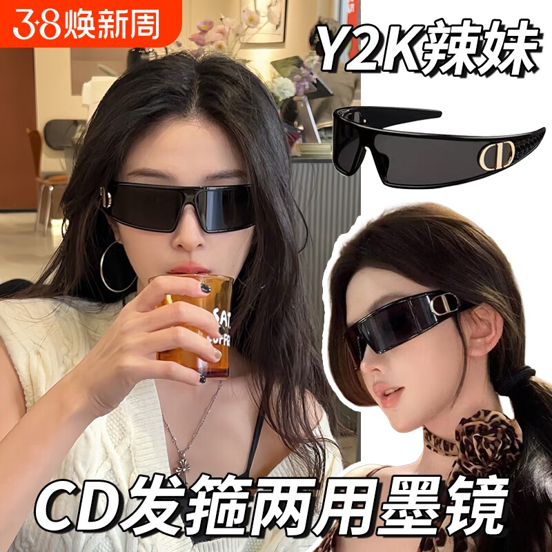 Y2K猫眼发箍墨镜女高级感gmJennie防晒太阳镜偏光新款圆脸徒步