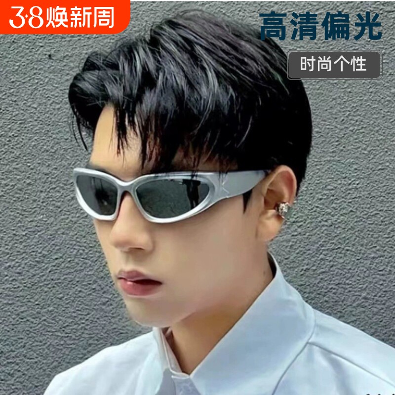偏光防紫外线墨镜银色男女同款骑行ins千禧辣妹太阳眼镜圆脸椭圆