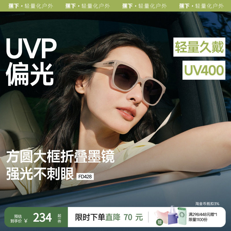 蕉下可折叠墨镜男女式简约圆脸显瘦防晒百搭焦下气垫偏光太阳眼镜