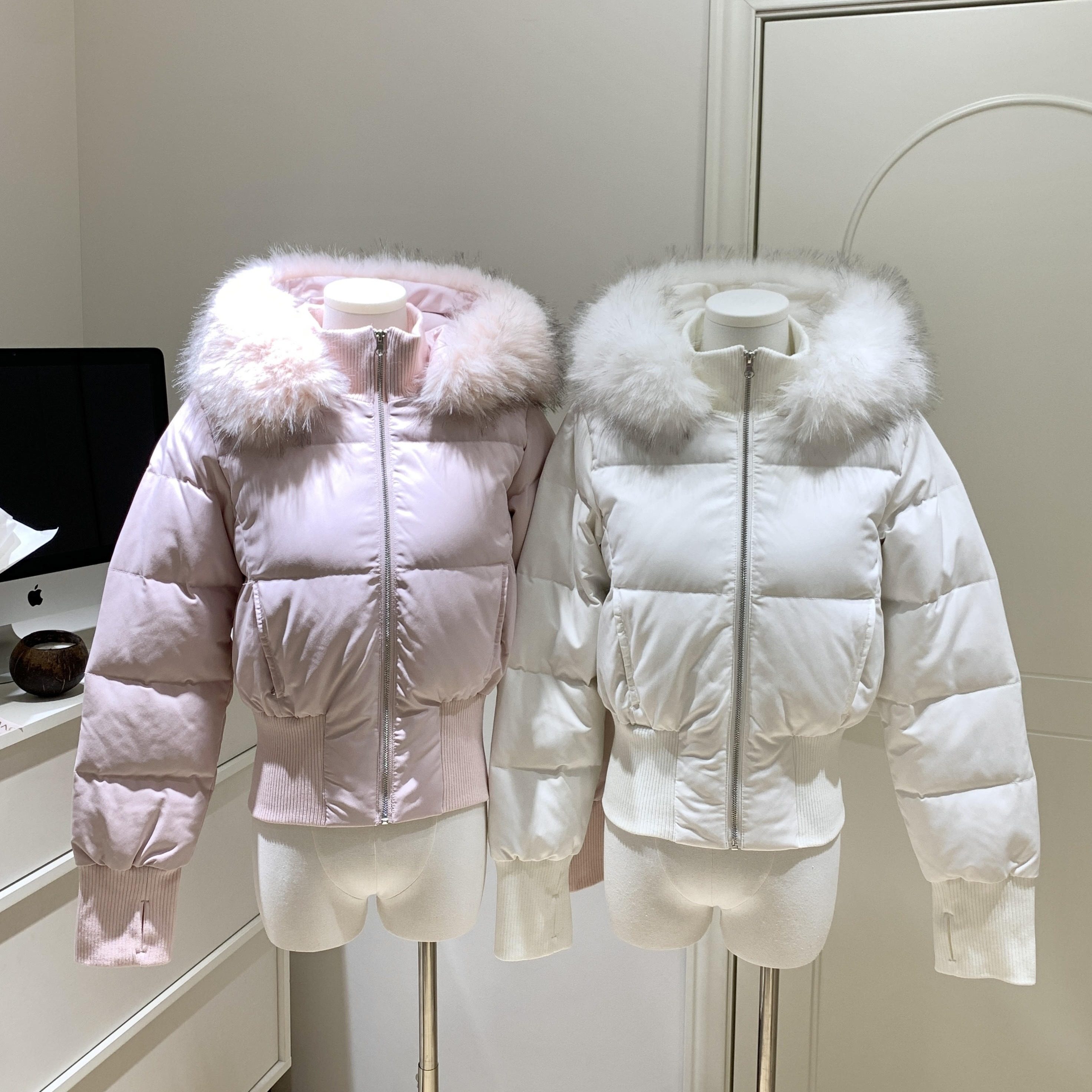 韩国原版2025冬季新修身收腰90白鸭绒显瘦羽绒服女短款狐狸大毛领