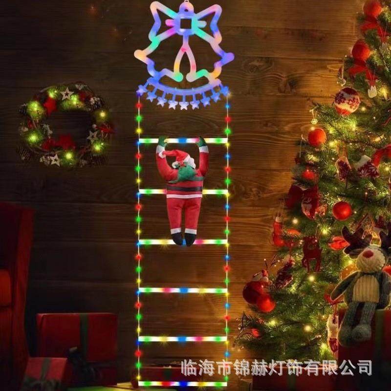 热销圣诞节LED楼梯灯圣诞老人玩偶爬梯灯攀登梯子灯带墙壁装饰灯