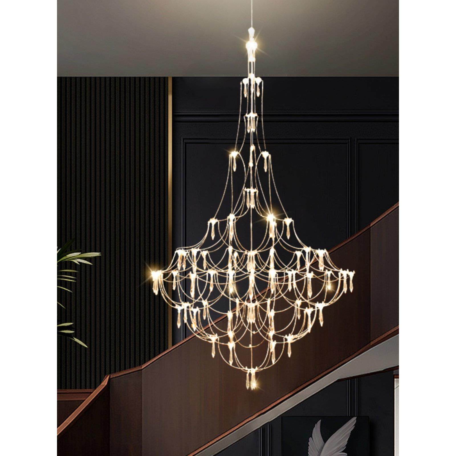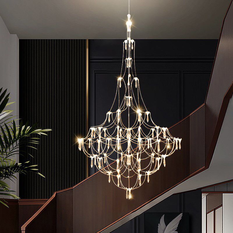 别墅复式楼大吊灯客厅水晶高级感现代萤火虫满天星展厅led楼梯灯
