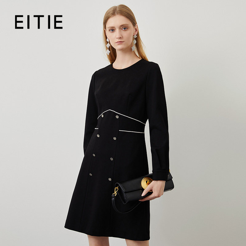 【设计总监然姐】EITIE爱特爱气质假两件小香风高腰a字显瘦连衣裙