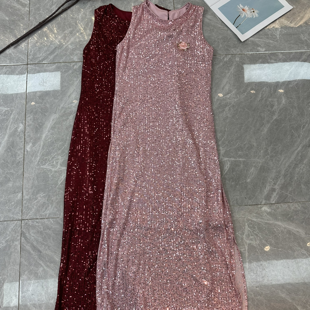 26年早春!爱特爱气质圆领修身红色重工亮片复古礼服背心连衣裙