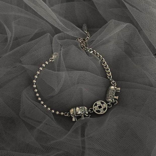 泰银做旧小象铜钱手链女性民族个性原创设计复古创意大象藏银首饰