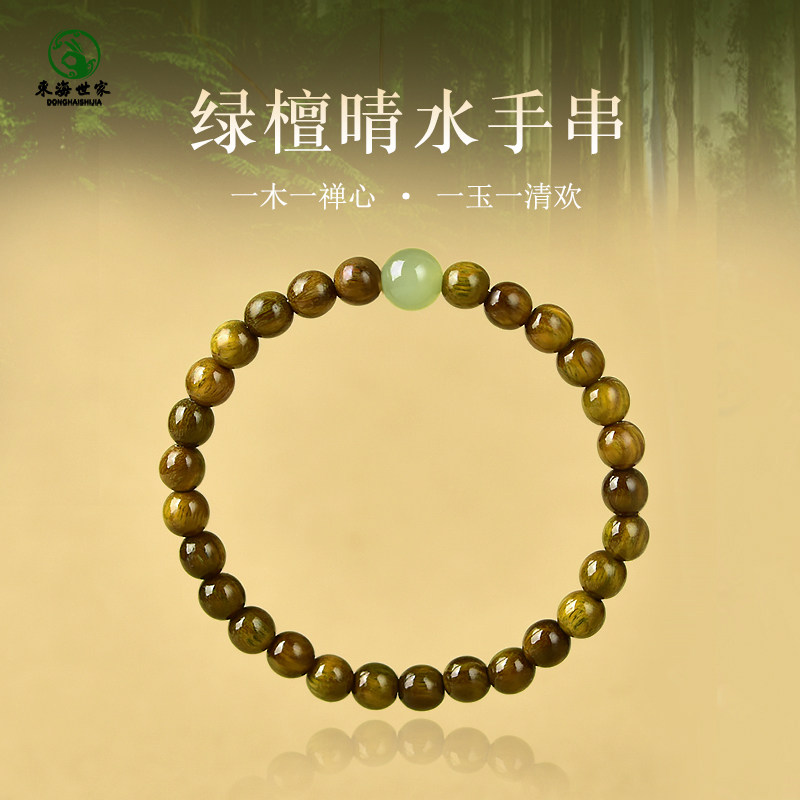 绿檀手串女水晶玛瑙翡翠玉石檀香木文玩佛珠檀木散珠子绿檀木手链