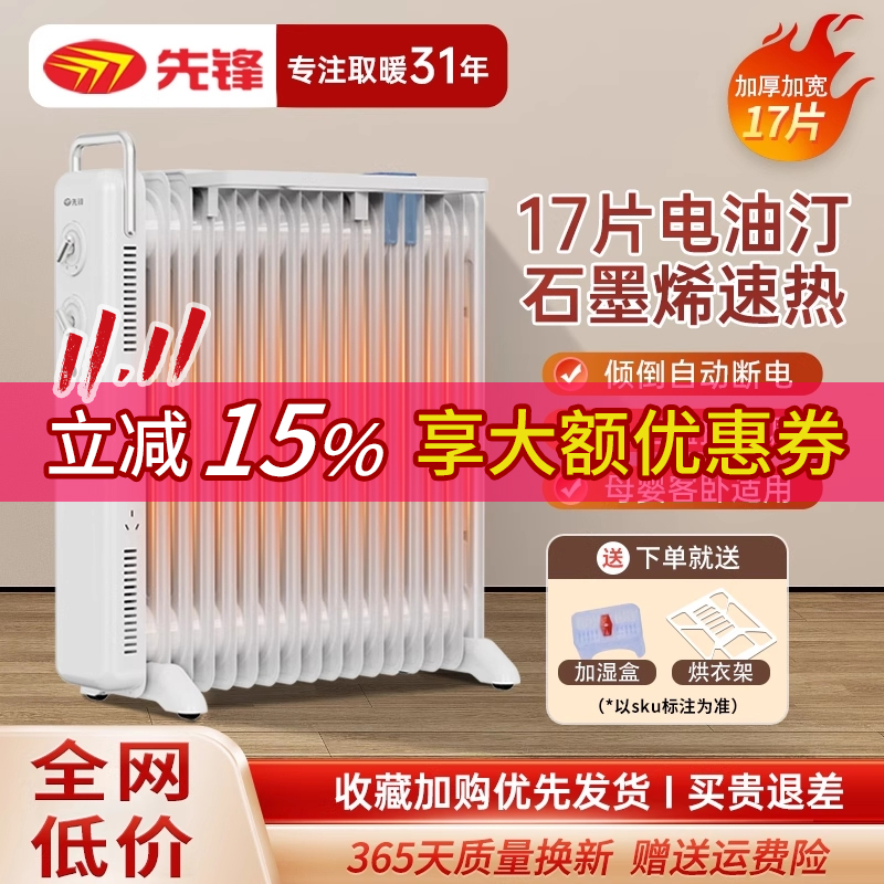 先锋石墨烯油汀取暖器家用17片电暖器恒温制热节能大面积暖风机