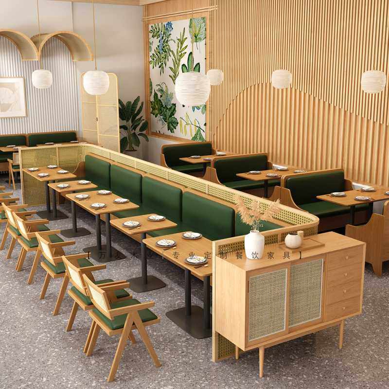 实主题餐厅桌椅组合木南商NZI用复古茶饭店餐厅东亚西餐厅卡座沙