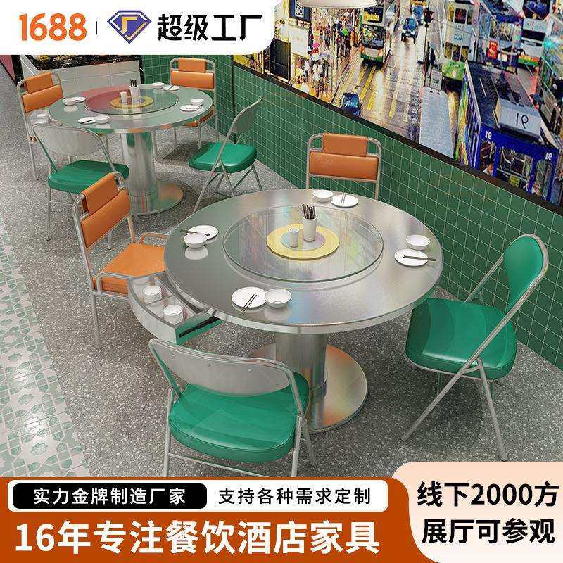小吃店餐厅西餐厅卡座沙发甜品店茶餐厅网红不锈钢桌椅组合折叠椅