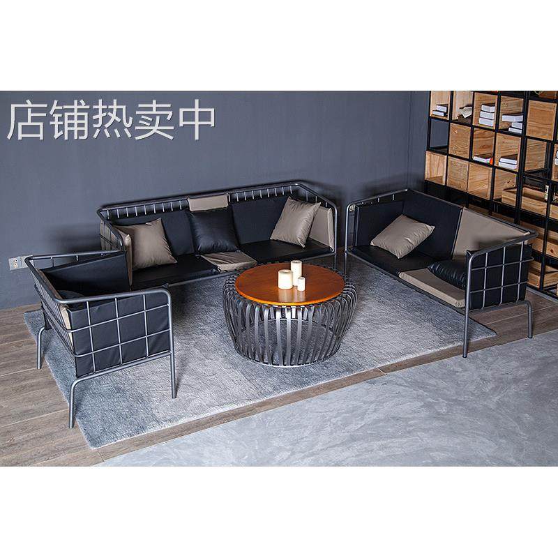 简约现代客厅铁艺沙发茶几组合布艺沙发椅咖啡厅西餐厅卡座沙发椅