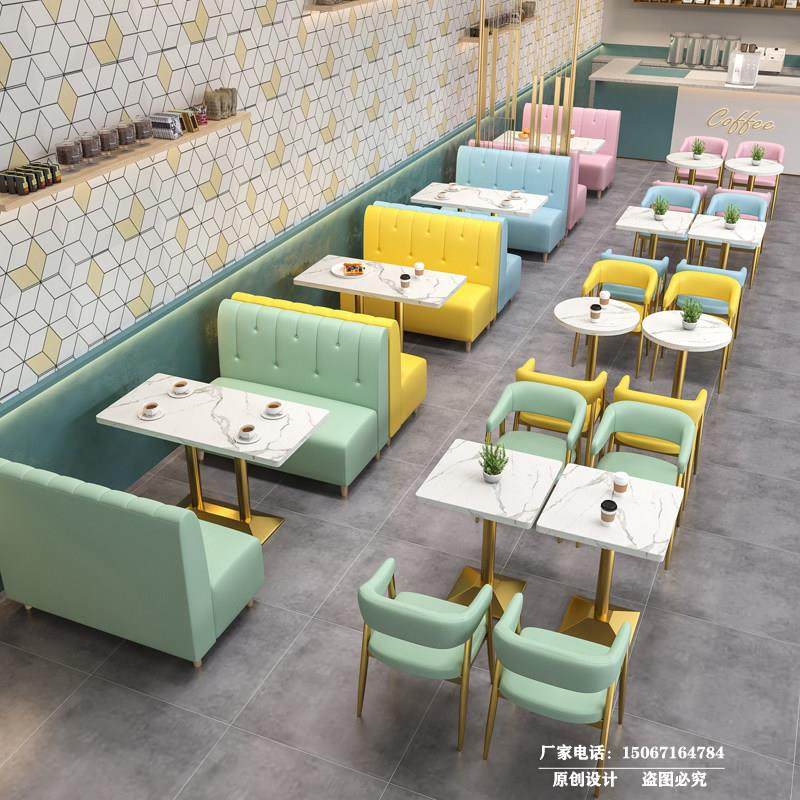 新款直销网红奶茶甜品餐饮店餐吧西餐厅卡座沙发商用连锁咖啡厅桌