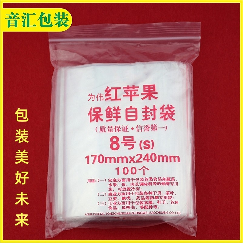 自封袋 8号密封袋 包装食品袋 封口保鲜袋 pe透明夹链塑封塑料袋