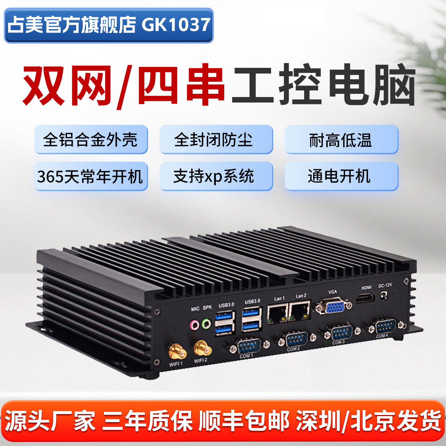 占美双网口千兆工业电脑嵌入式串口xp无风扇迷你主机工控机GK1037