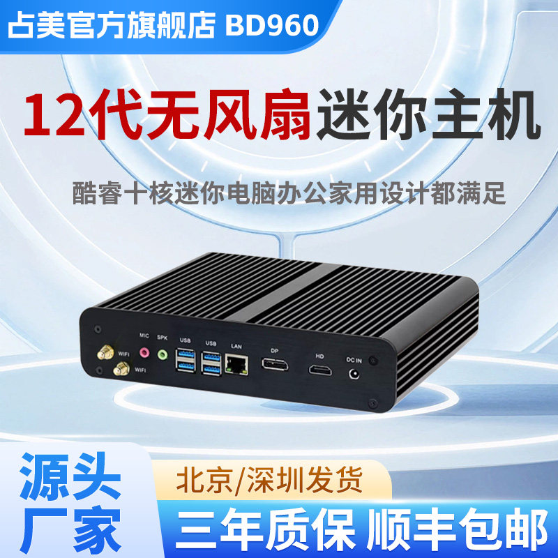 占美 12代N100mini小主机四核工控无风扇电脑办公家用广告机HT690