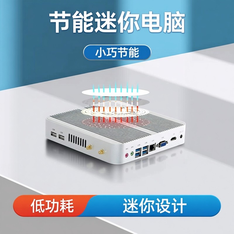 占美迷你新款功能网络四核低功耗 千兆网卡嵌入式打标无风扇整机