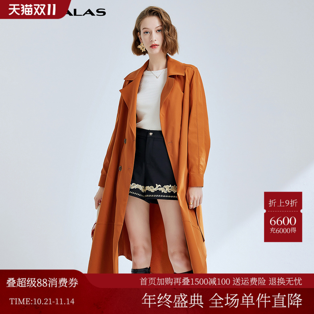 戴布拉芬新款秋季设计感西装领双排扣风衣女长款气质系带显瘦外套
