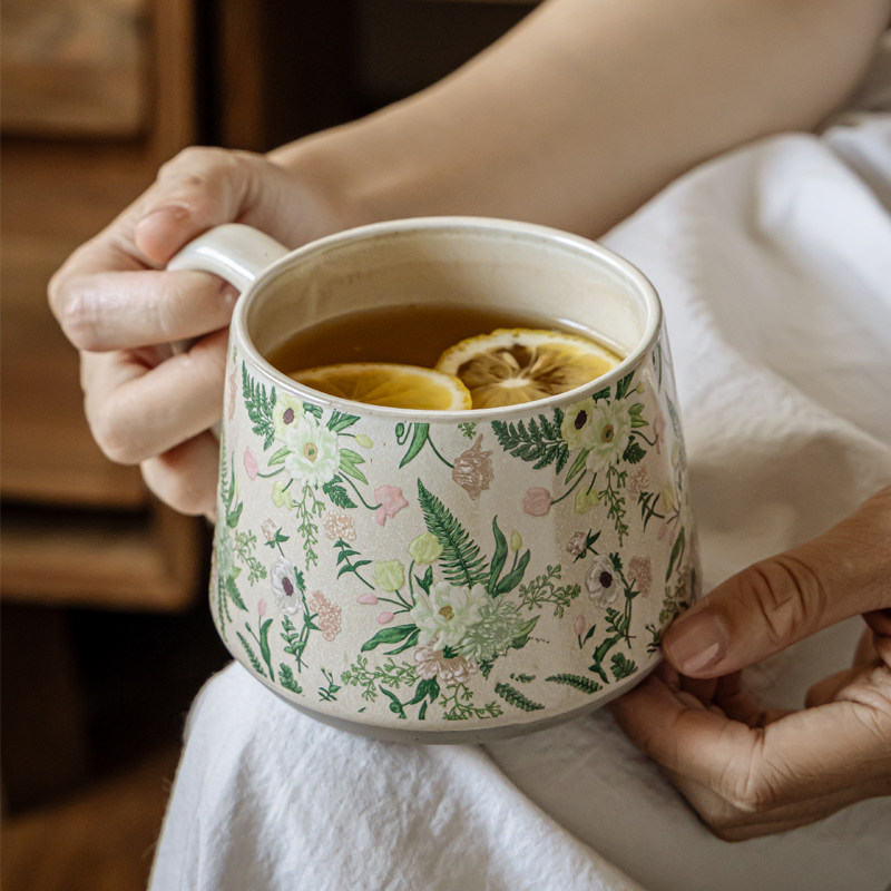 复古濑户烧早餐杯家用手绘浮雕陶瓷杯大容量办公花茶杯牛奶燕麦杯