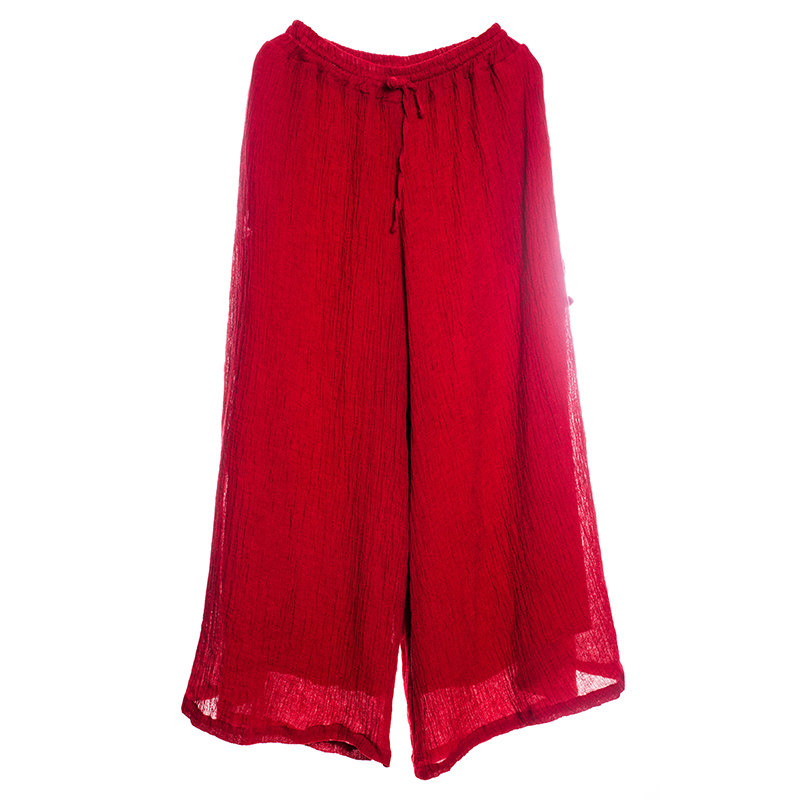 夏天舞蹈亚麻褶皱中式大腿裤女阔腿裤 禅意裙裤 大摆宽松文艺长裤