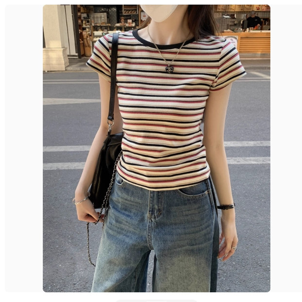 圆领上衣显瘦夏装2024r年新款夏季学生短袖t恤女夏天女装韩版宽松