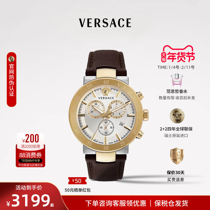 新年礼物 范思哲VERSACE男表手表时尚多功能三眼计时运动表品牌