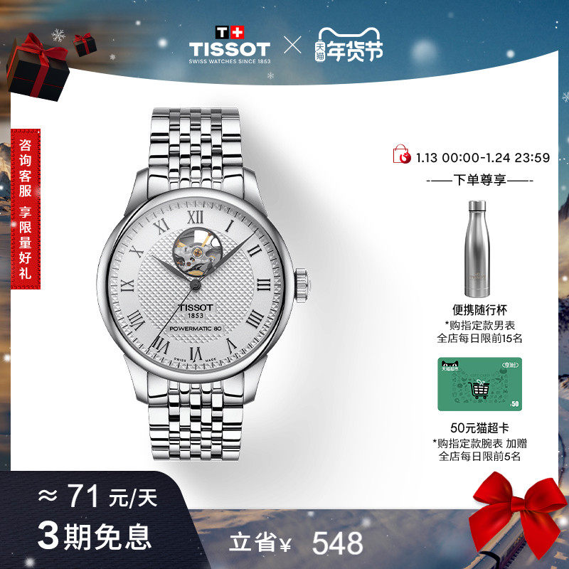 【新年礼物】Tissot天梭官方正品力洛克系列机械镂空钢带男表手表