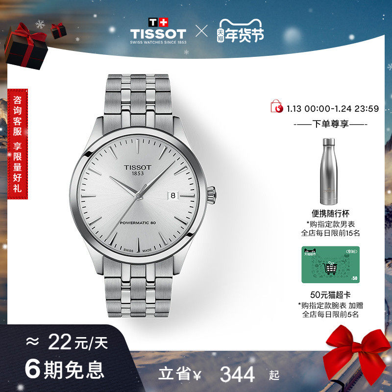 【新年礼物】Tissot天梭官方正品梦圆系列机械钢带男表手表