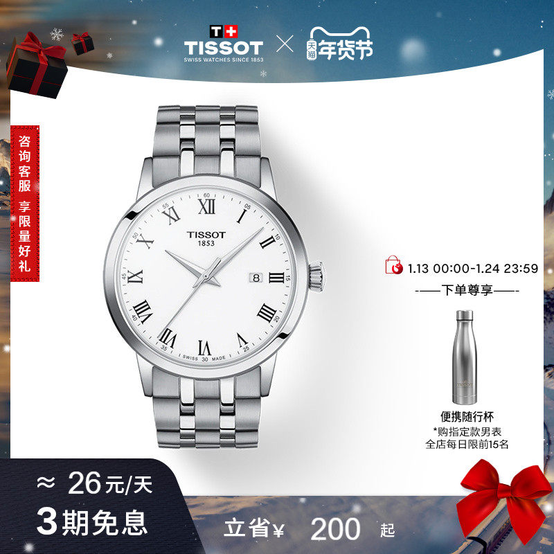 【新年礼物】Tissot天梭官方正品梦圆系列石英钢带男表手表