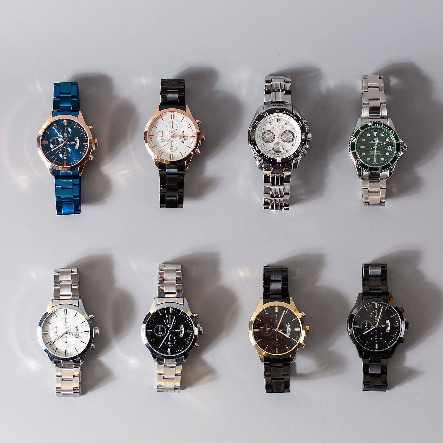 批发跨境爆款日历钢带石英表男商务男士手表三眼大表盘watch男表