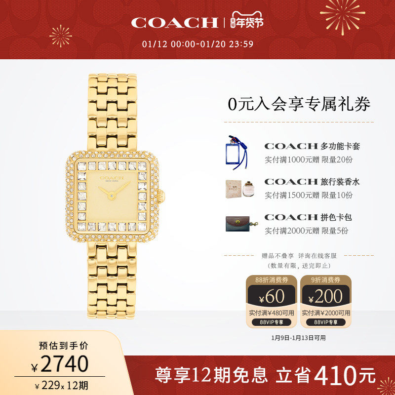 【罗一舟推荐】COACH/蔻驰CASS人造水晶方盘石英女表男表手送女友