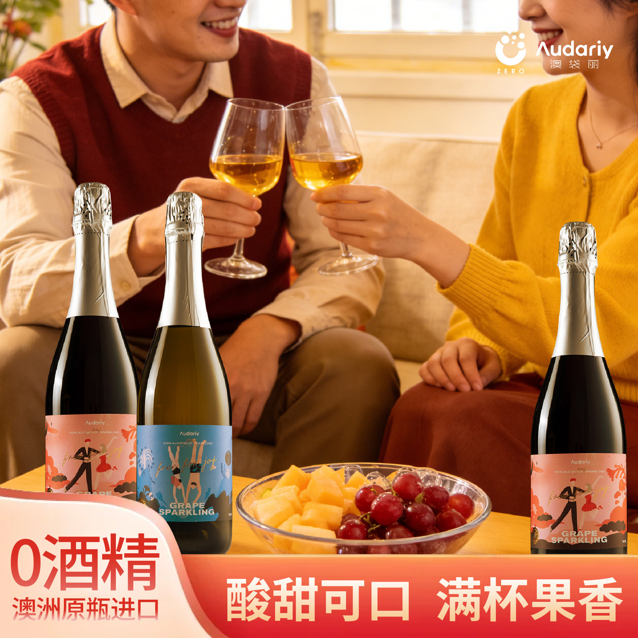 无醇澳袋丽撒野无酒精红白葡萄汁酒莫斯卡托气泡起泡香槟女士聚会