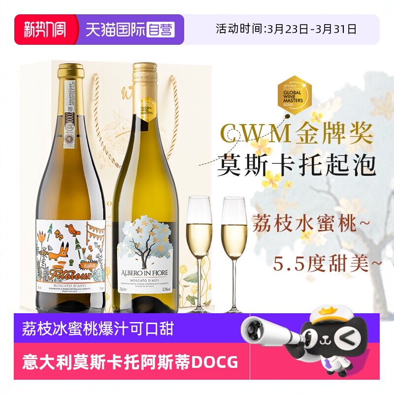 莫斯卡托起泡酒甜白桃红四代小白花葡萄酒气泡酒果酒女生礼物盒装