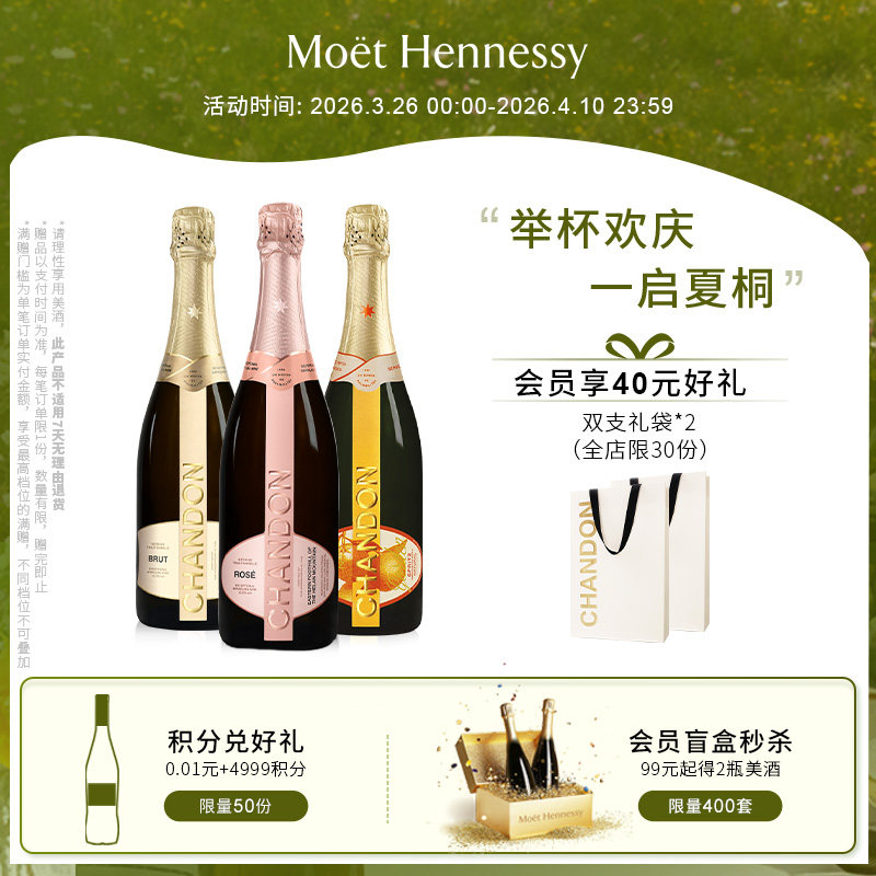 官方直营 夏桐Chandon全家福起泡酒高泡葡萄酒3支装高级气泡酒