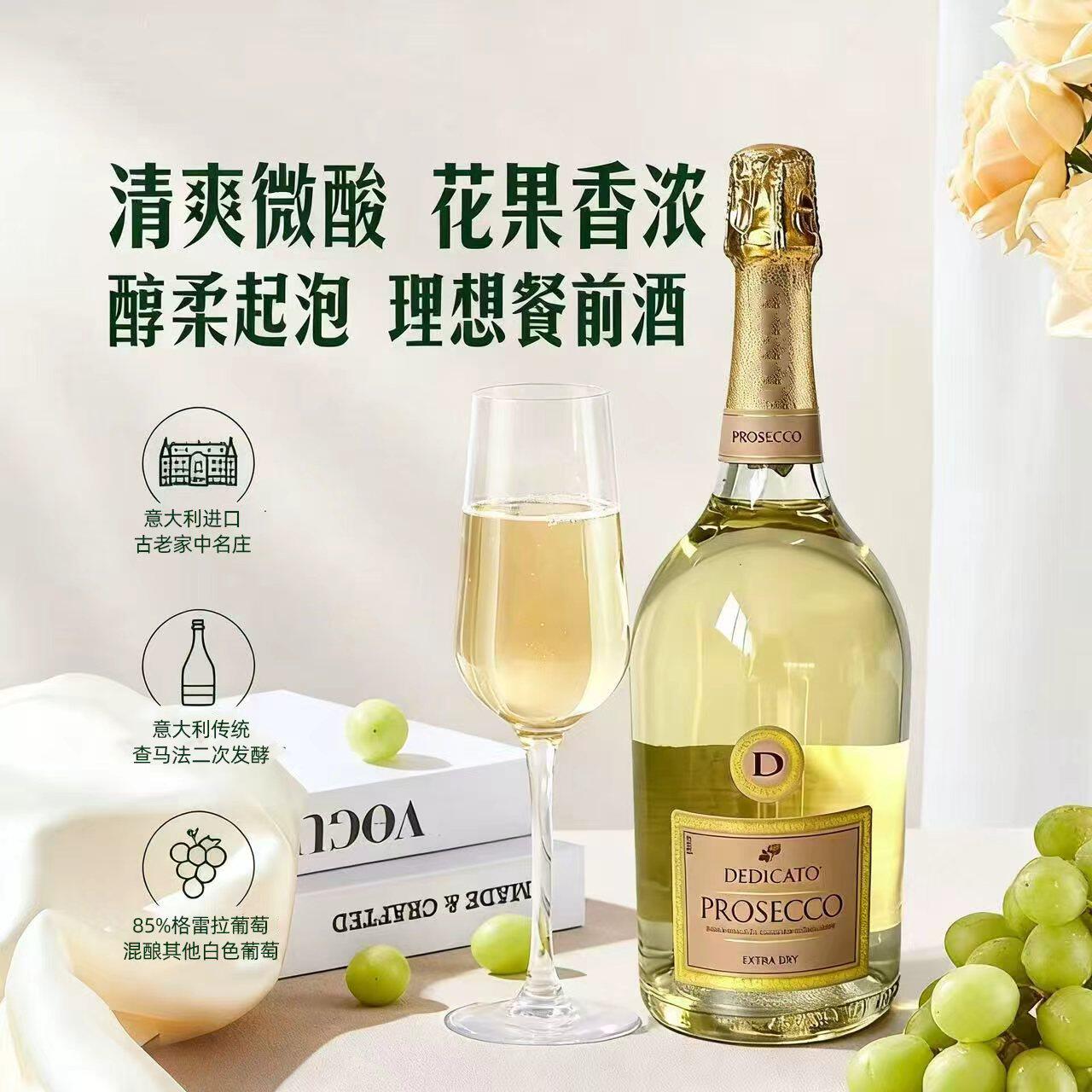 意大利原瓶进口DOC等级卓越普罗塞克绝干高泡白葡萄酒清爽起泡酒