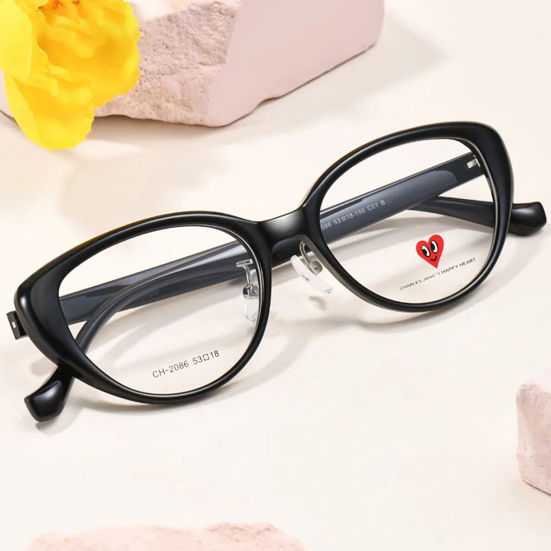 查尔斯桃心眼镜复古猫眼时尚显瘦眼镜架黑框可配度数素颜眼镜2086