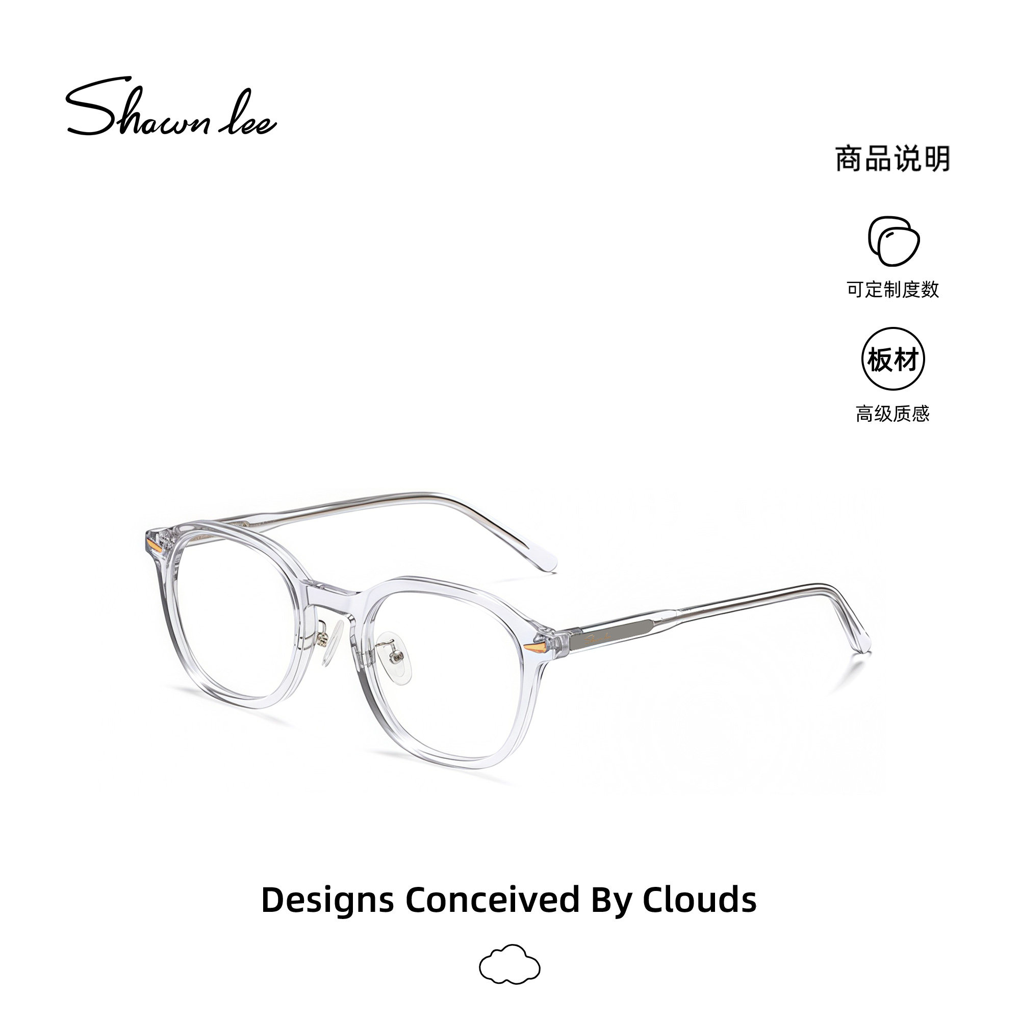 Shawnlee透明色眼镜框女韩版潮近视眼镜复古眼镜架男防蓝光配度数