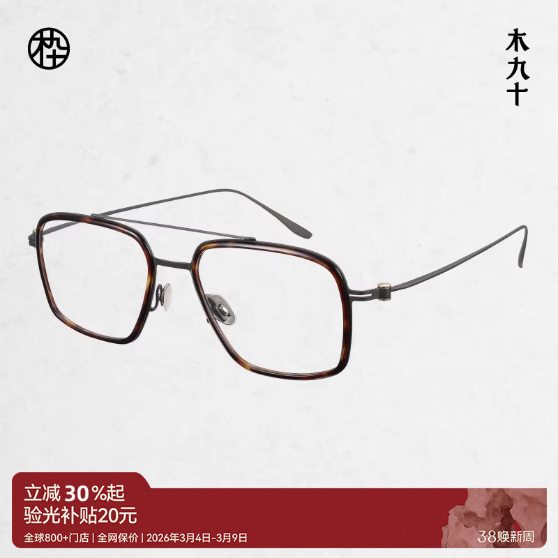 木九十新款近视眼镜复古双梁飞行员框8.5g超轻镜架FK109