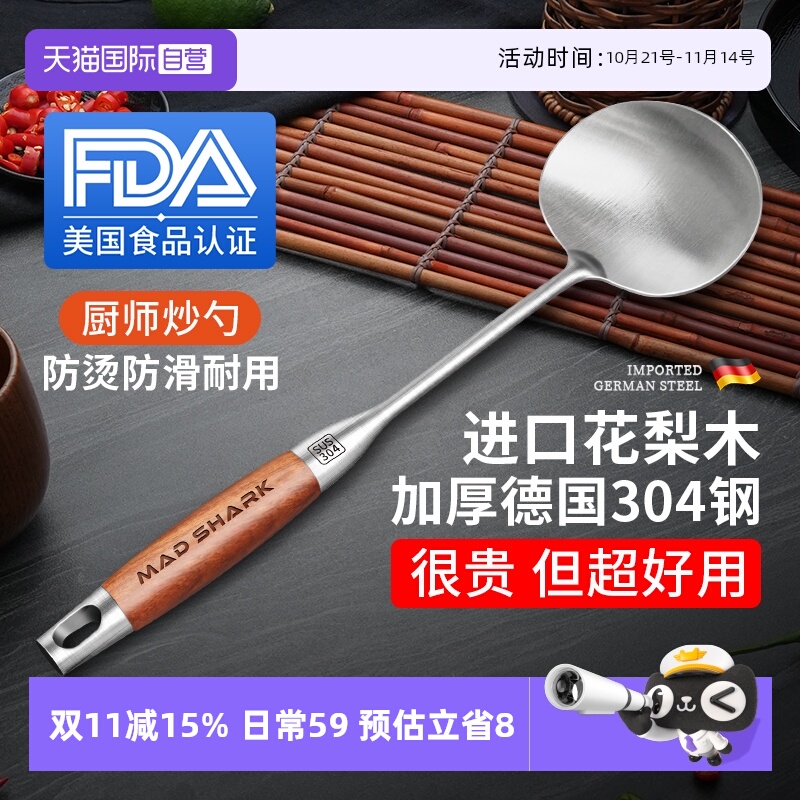 【自营】狂鲨 炒勺家用304不锈钢锅铲套装炒菜铲子蘑菇铲煎汤勺漏