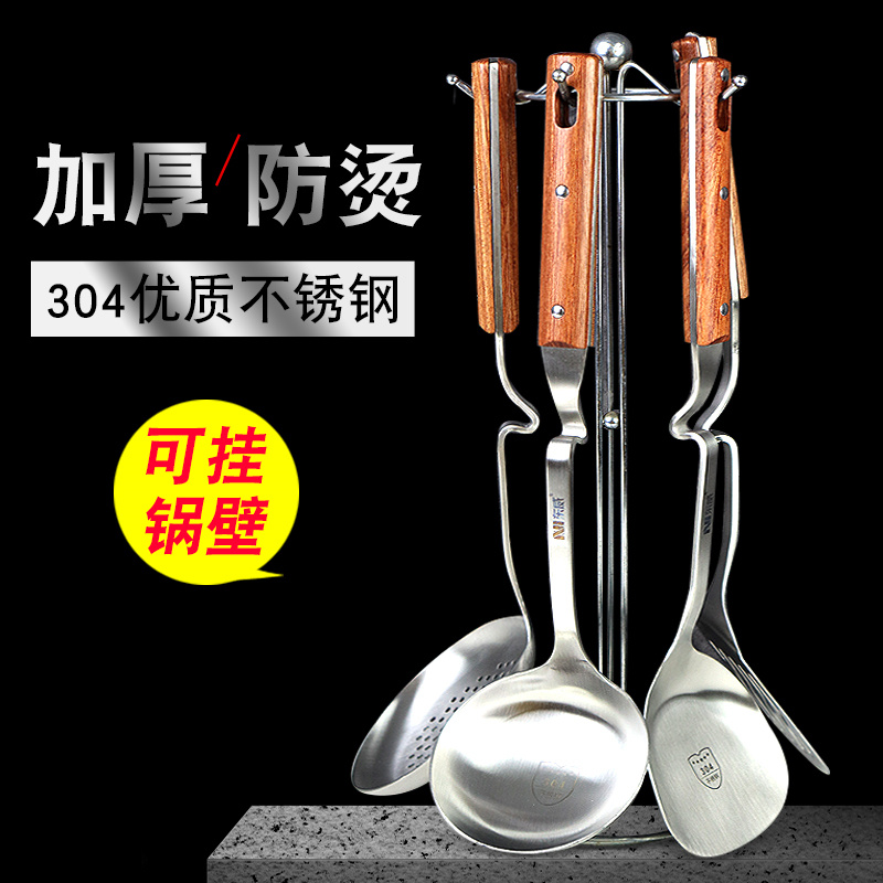 304加厚不锈钢锅铲套装防烫炒勺家用实木汤勺炒菜铲子漏勺煎铲厨