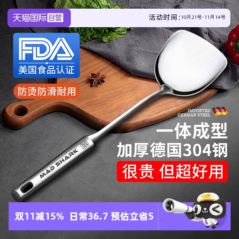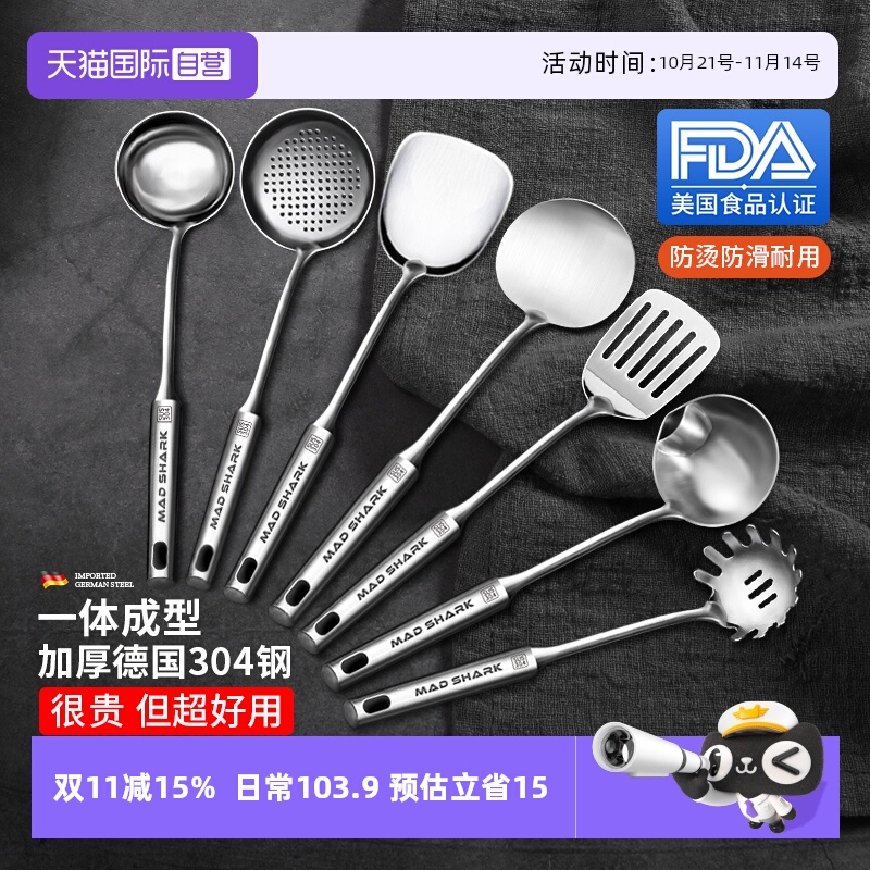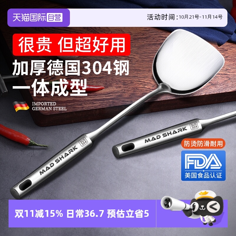 【自营】狂鲨 304不锈钢锅铲套装炒菜铲子家用炒勺蘑菇铲煎汤勺漏