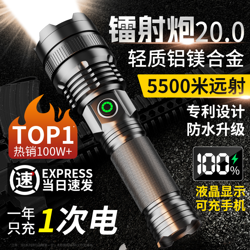 高亮度超亮手电筒强光充电户外激光家用迷你便携耐用多功能长续航