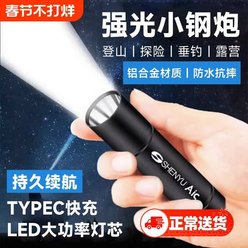神火手电筒强光充电式超亮登山户外迷你便携家用耐用小型2026新款