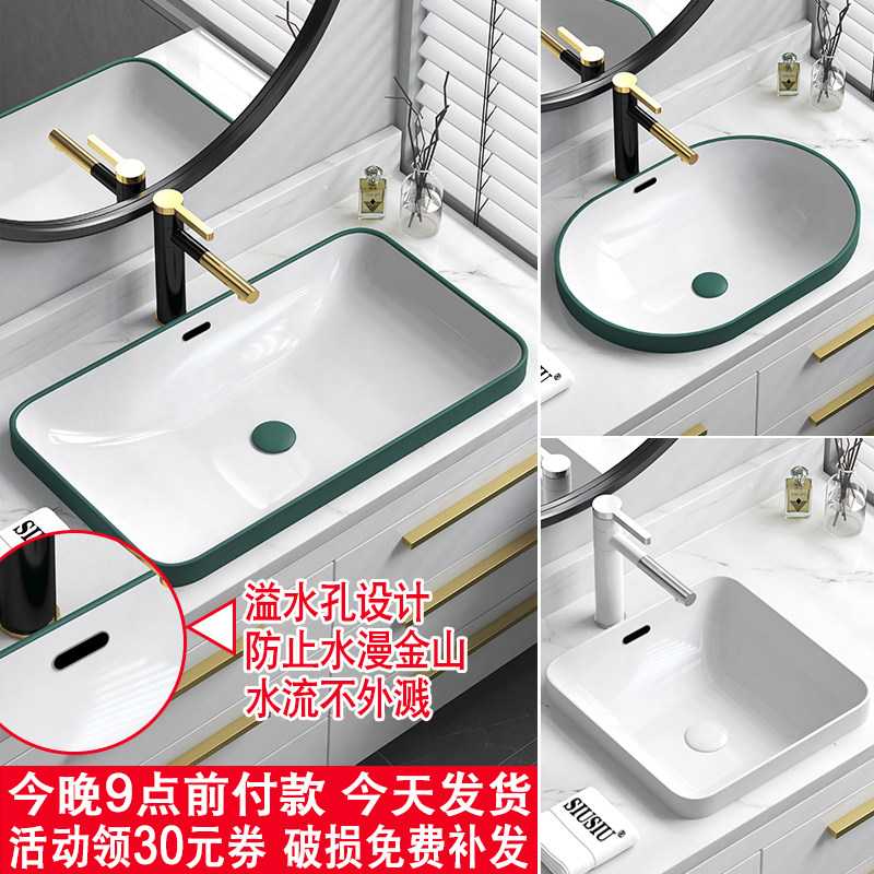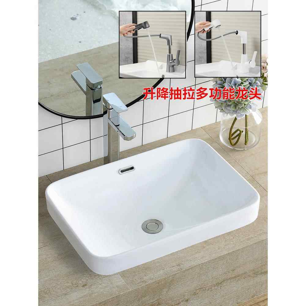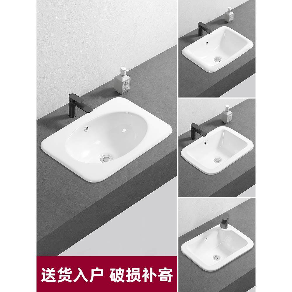家用台中盆半嵌入式洗手盆陶瓷洗脸盆嵌入式台上盆方形半嵌入台盆