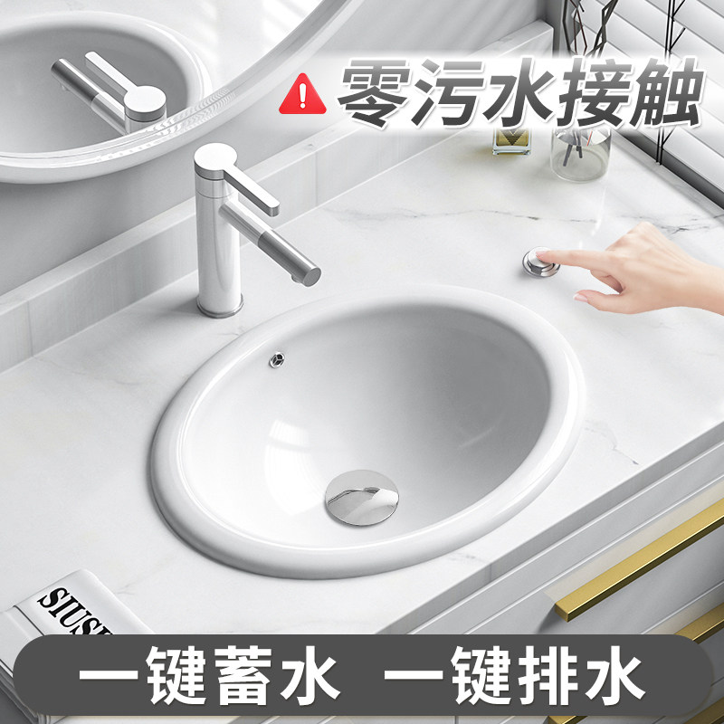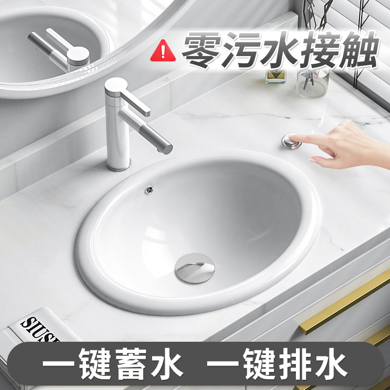 嵌入式台上盆台中盆台控排水陶瓷椭圆洗衣盆洗手池洗漱洗脸槽面盆