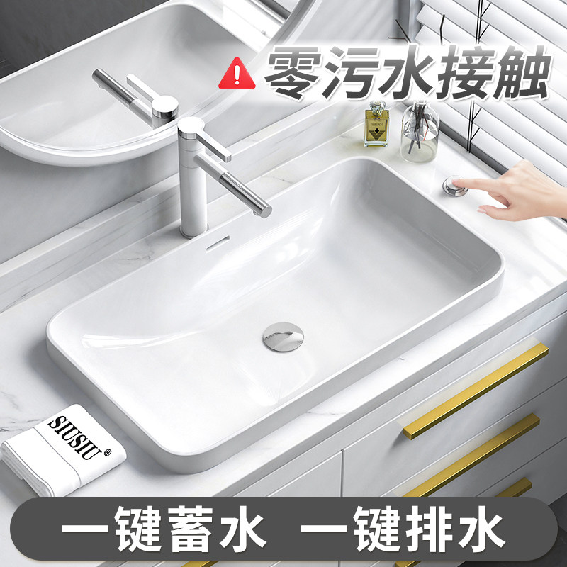 半嵌入式台上盆洗手盆陶瓷台下盆方形台盆台中盆卫生间洗手盆面盆