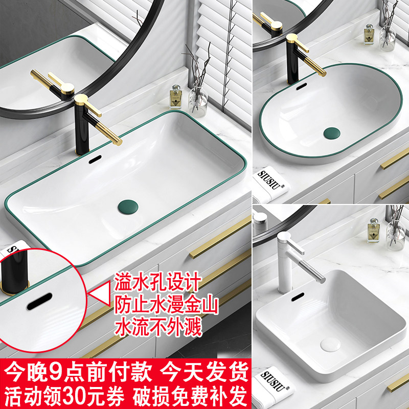 半嵌入式台上盆台中盆陶瓷洗脸盆长方形洗手盆槽椭圆形洗面盆水池