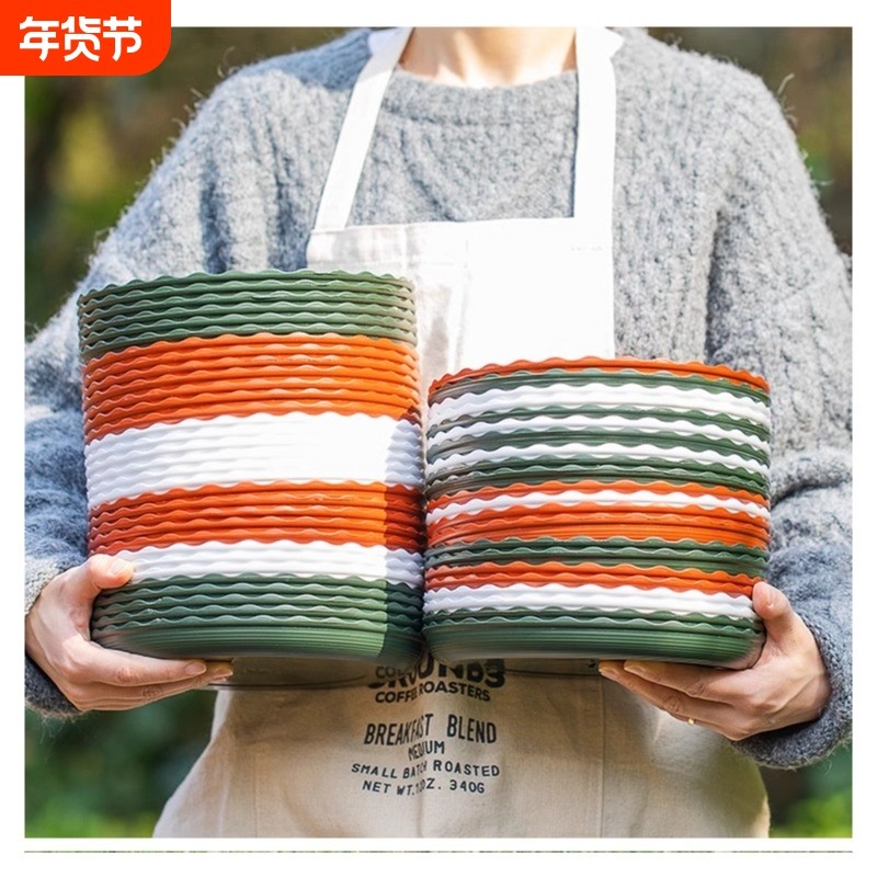 加厚树脂花盆托盘塑料花托底座接水花盘透气花架盆圆形垫底白绿色