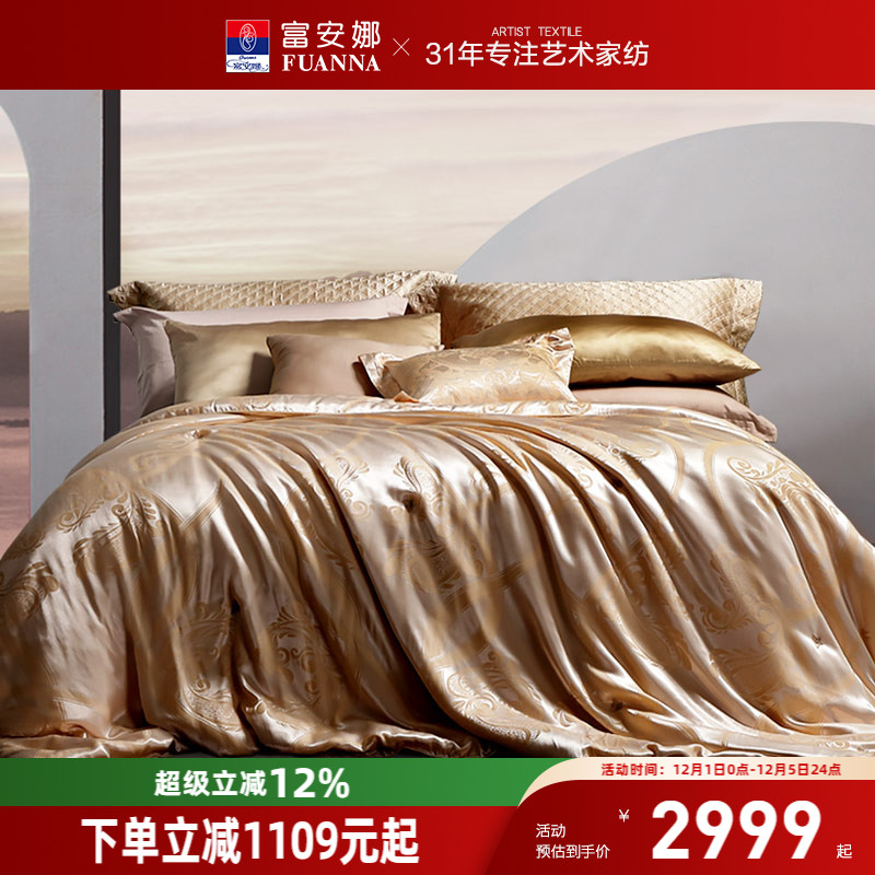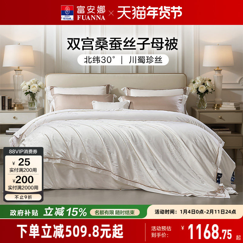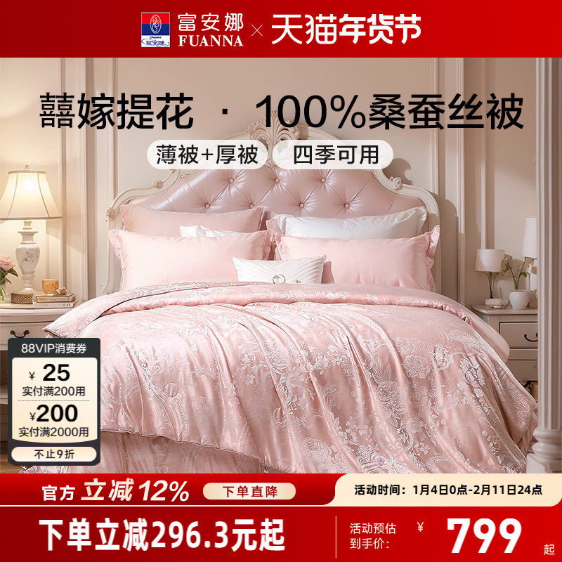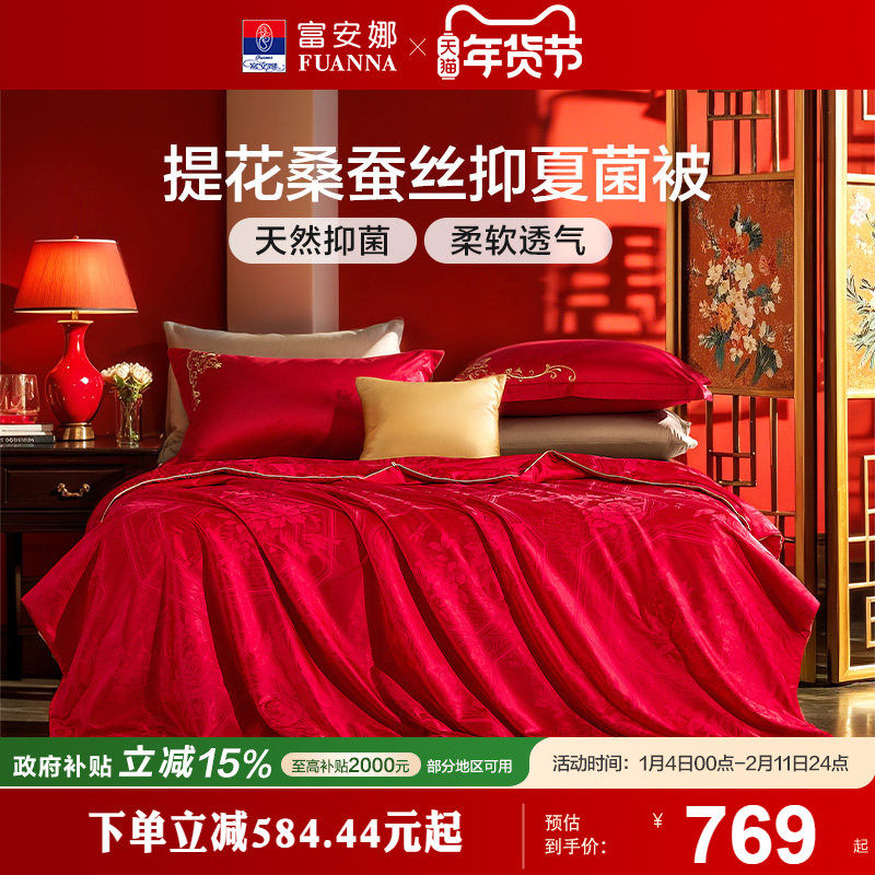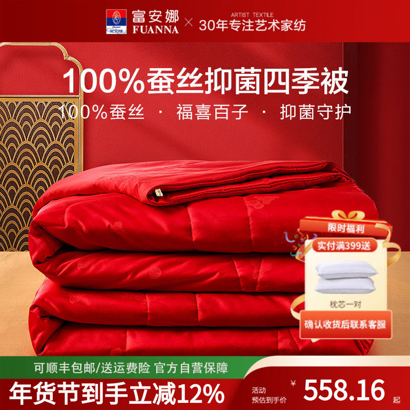 富安娜婚庆蚕丝被冬季被子桑蚕丝被芯二合一婚嫁子母被褥结婚喜被